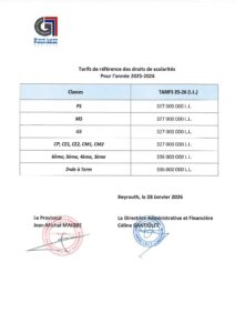 Tarifs scolaires Grand Lycée 2025-2026