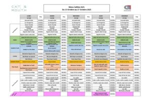 Menu Cafètes GLFL du 13 au 17 Octobre 2025