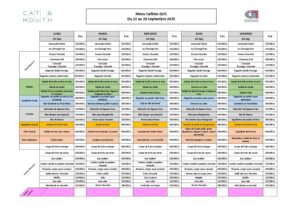 Menu Cafètes GLFL du 22 au 26 Septembre 2025 (Corrigé)