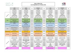 Menu Cafètes GLFL du 29 Sep. au 3 Octobre 2025