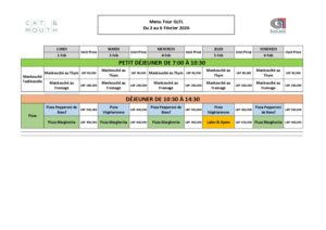 Menu Four GLFL du 2 au 6 Mars 2026