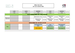 Menu Four GLFL du 5 au Janvier 2026